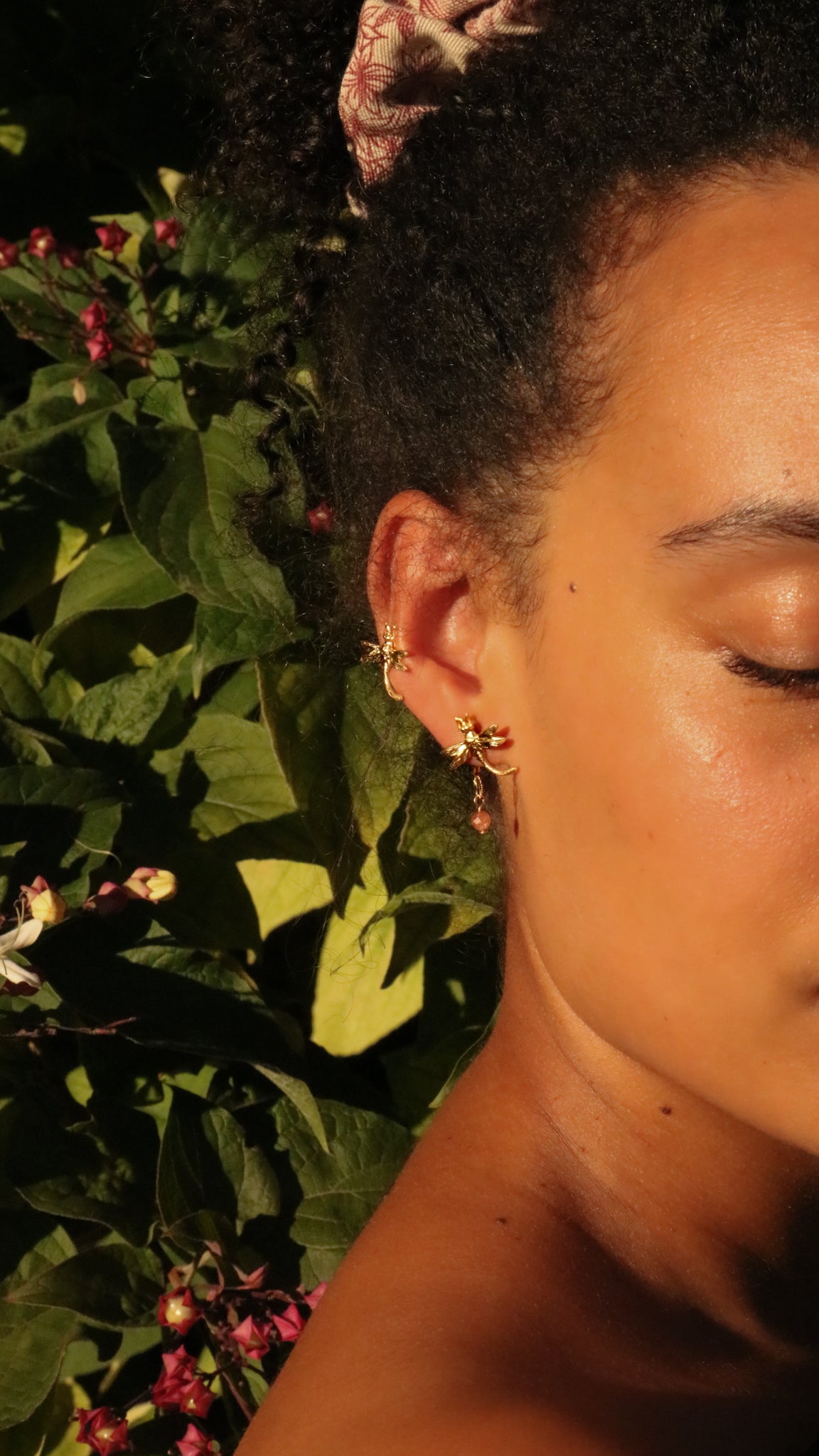 Les boucles d'oreille Poësis se complètent et s'accumulent avec la bague d'oreille Poësis, avec autant de liberté que des libellules qui dansent dans l'air parfumé du soir.