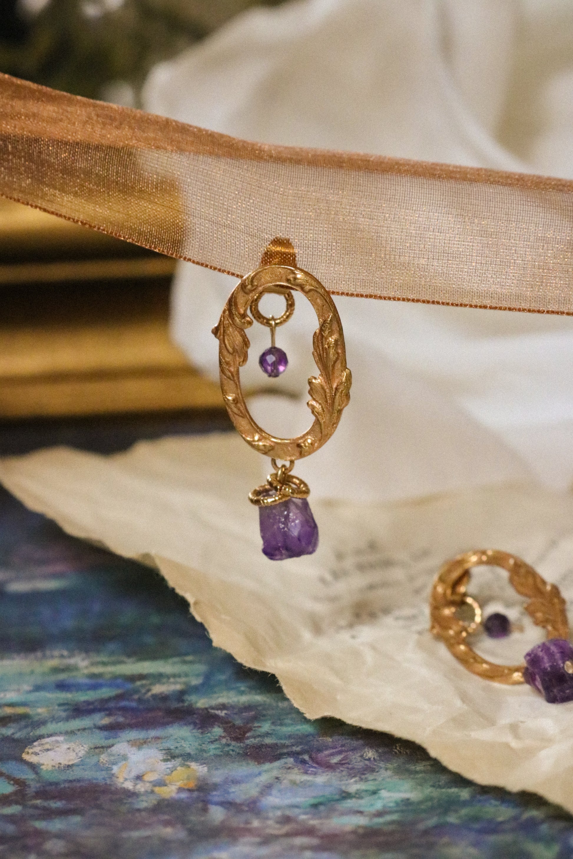 Composition : dorée à l'or fin 24 carats, 1 micron, sur base de laiton (sans Nickel, sans Plomb et sans Cadmium). Améthyste.